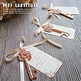 EFOXMOKO - Customized tag by yourself write your message to your guests with a pen or sharpie at the bottom empty space on tags The tag made from 130lb premium matte finished kraft cardstock wont bleed or smear after writingstamping Size 374 x18 x 002 Sturdy material keys made from a harder metal zinc alloy zamak5 Work to open beer bottle cap attached to keychain easily Plated with a thick rose gold layer 04μm to protect corrosion Size 303 x 11 x 015 037oz not too heavy not too light just right Warm thanks to your guests the rose gold foiling on a white color tag the rosy key and the soft light peach ribbon blend to create a beautiful bridal shower favor for your guests Tags saying read thank you for celebrating with us Were so glad youre here Printed on one side blank on another side